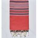 Fouta arabesque rouge avec rayures violet d'évèque 100 % coton