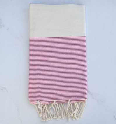 Fouta plate blanc crème et rose bébé avec rayures 100 % coton
