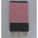 Fouta plate gris foncé rayée rouge anglais et blanc 100 % coton