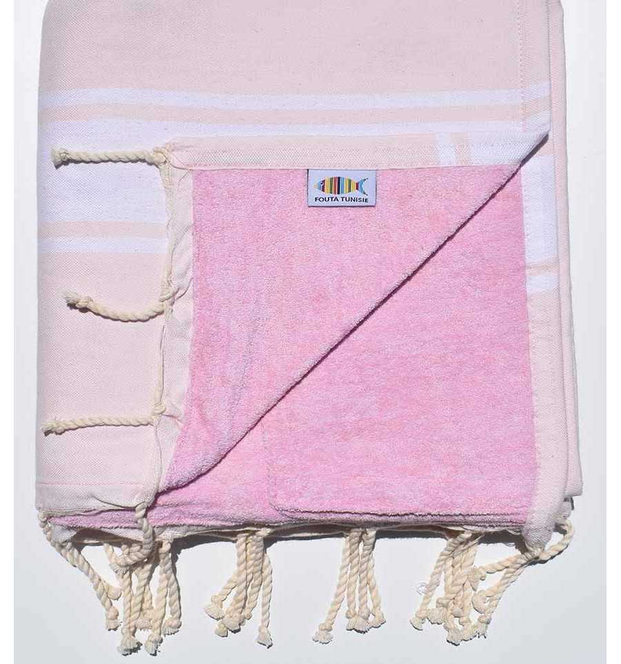 Serviette de plage doublée éponge rose très clair Fouta Tunisia - 1
