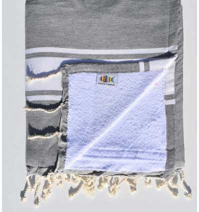 Serviette de plage , tissage à plat doublée avec un tissu éponge pour plus de douceur et absorption.