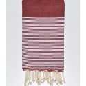 Superbe fouta nid d'abeille 100% coton de couleur bordeaux rayée blanc