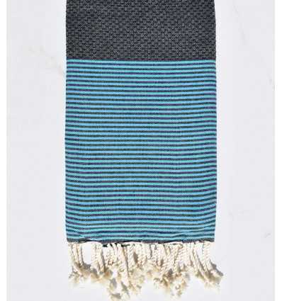 Fouta nid d'abeille bleu nuit rayée bleu turquoise 100 % coton