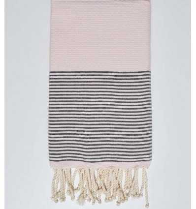 Superbe fouta nid d'abeille 100% coton de couleur rose bébé rayée gris anthracite