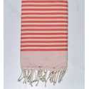 Fouta nid d'abeille rayée 1 cm couleur rose corail 100 % coton