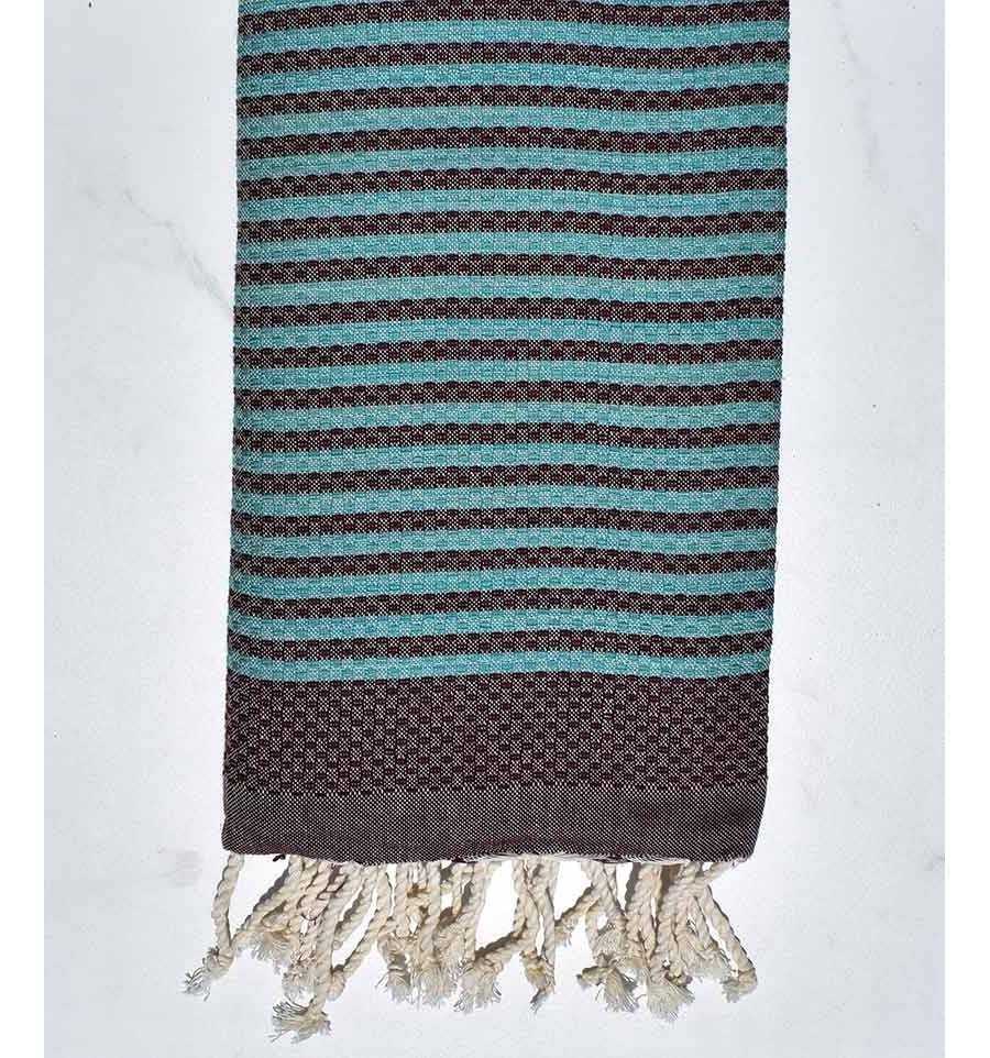 Fouta zèbre couleur aubergine et bleu azur 100 % coton
