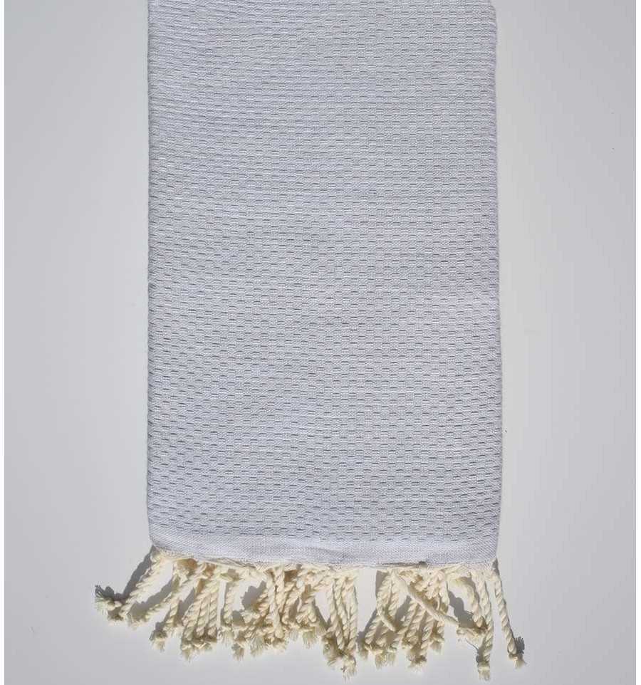 Serviette de plage nid d'abeille unie couleur gris très clair 100 % coton
