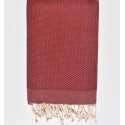 Serviette de plage nid d'abeille unie couleur rouge bourgogne 100 % coton