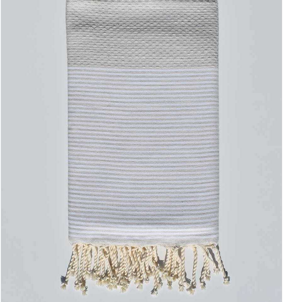 Serviette de plage nid d'abeille beige de gris 100 % coton.