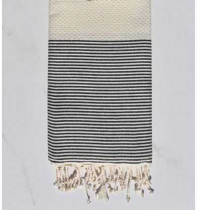 Superbe fouta nid d'abeille 100% coton de couleur beige crème rayée noir