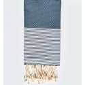 Superbe fouta nid d'abeille 100% coton de couleur bleu minéral rayée blanc