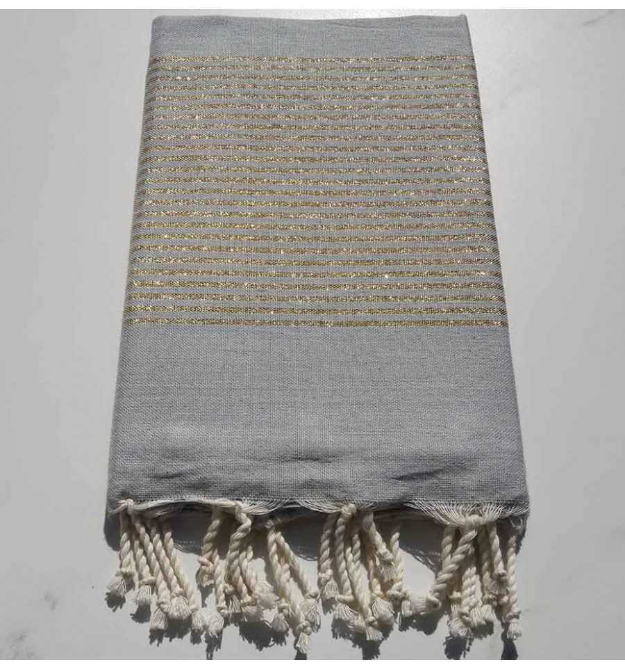 Superbe fouta 100% coton couleur bleu charette au fil lurex doré