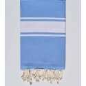 Fouta bleu azur 100% coton, peut être utilisée comme serviette de plage, paréo mais pas que; elle est aussi utilisée comme un accesoire de déco