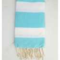 Fouta nid d'abeille blanc et turquoise 100 % coton