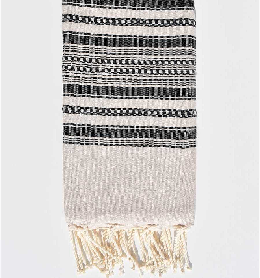 serviette de hammam 100% coton tissage a plat écru avec des rayures noire