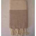 Superbe fouta nid d'abeille 100% coton de couleur beigeasse rayée chocolat