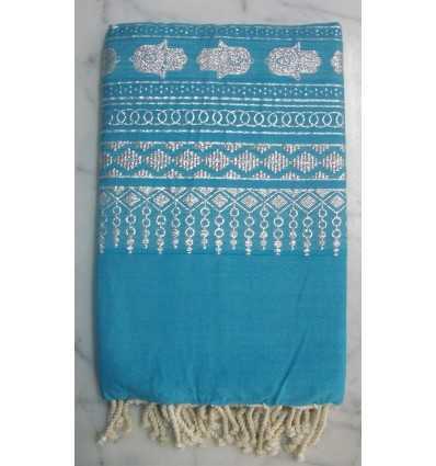 Fouta chic, il s'agit d'une fouta décorer avec la main de fatma e couleur turquoise