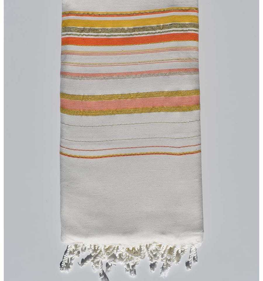 Jeté Fadhila blanc crème, orange et moutarde avec lurex doré