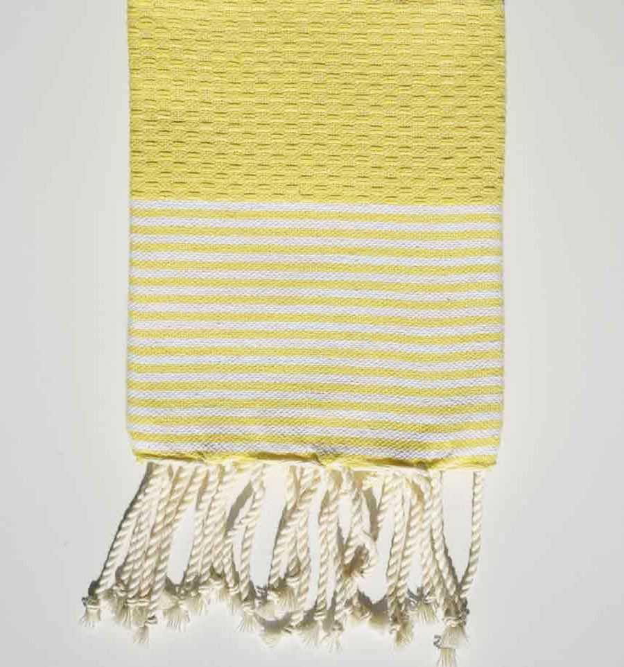 Lot de 10 serviettes de table nid d'abeille couleur jaune avec rayures blanche