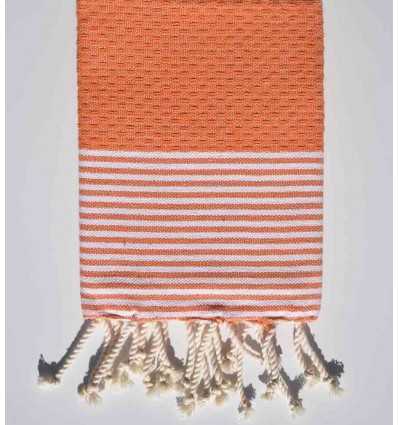 Serviette de table orange avec rayures 100% coton.