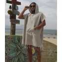 Poncho de plage en nid d'abeille à capuche pour adulte couleur grège