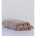 • Cette serviette de bain est tissée en jacquard, avec franges tressées à la main .